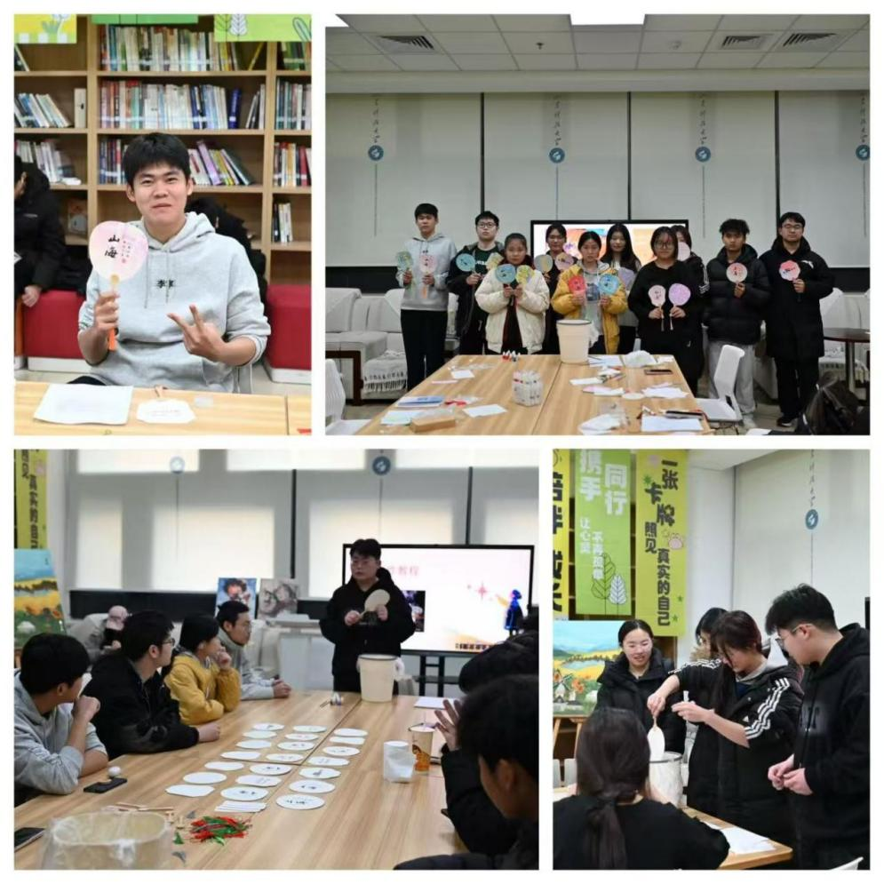 活动期间,学生参与热情高涨,艺术学院路鸿博同学分享道“在漆扇涂绘中,我完全沉浸在色彩与图案创作中,学业压力仿佛随画笔缓缓消散。”许多同学表示,通过活动不仅缓解了压力,更学会了以积极心态面对挑战。