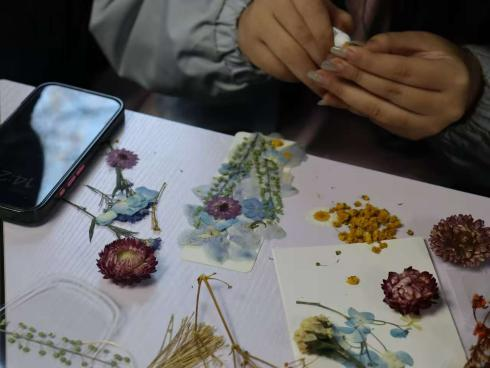 干花艺术创作体验活动精准契合学生对多元化、体验式活动的需求,将自然元素与艺术创作巧妙融合。学生充分发挥想象力,用干花打造出兼具自然之美与艺术感的作品。此次活动既满足了学子对美学体验的追求,又为校园文化生活增添了独特色彩,让学生在与自然美学的对话中感知生活中的美好。