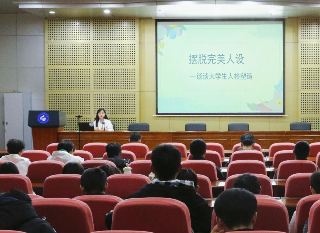 本期活动的主题为“摆脱完美人设——谈谈大学生人格塑造”,大学生心理健康教育中心姜振丽担任主讲,在J4-101会议室设置主会场,并在网络上进行了全程同步直播。姜振丽从人格发展特点、自我意识提升等方面进行了详细阐释,介绍了不完美成就独特的真实案例,引导大学生接纳“真实的自我”,从阅读、爱好培养、运动、社会交往、社会实践五个途径塑造健康人格。