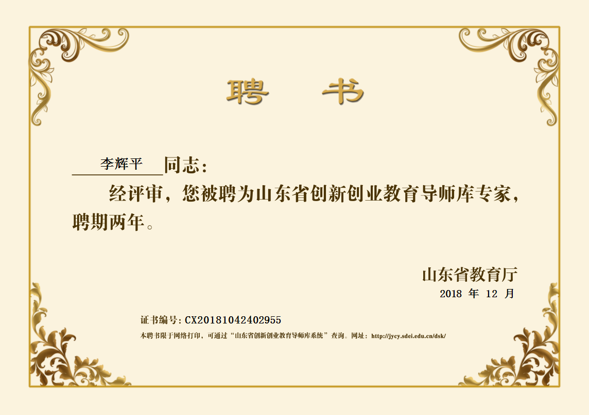 近日,山东省第二批创新创业教育导师库名单揭晓,刘伟韬等10名导师榜上有名,分别为,创新教育导师:刘伟韬、李辉平、谢俊;创业教育导师:鲍伟、曲效成、张永辉、姜增辉;学科专业导师:乔卫国、王吉岱、周刚。