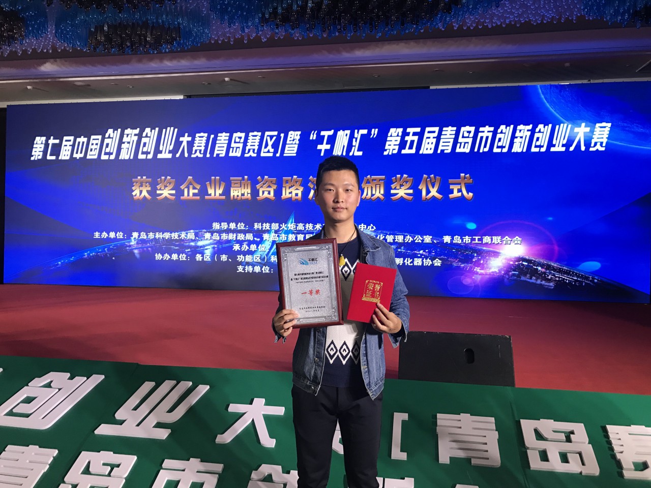 10月18日,由青岛市科学技术局、青岛市财政局、青岛市教育局、青岛市网络文化管理办公室、青岛市工商联合会举办的备受关注的第七届中国创新创业大赛[青岛赛区]暨“千帆汇”第五届青岛市创新创业大赛获奖企业融资路演、颁奖仪式及获奖项目展示等系列活动在青岛市市南区蓝海·颐海花园酒店举行。我校机电学院2017级硕士研究生曹昂的青岛万陆智能科技有限公司,获初创组一等奖,奖金30万元。