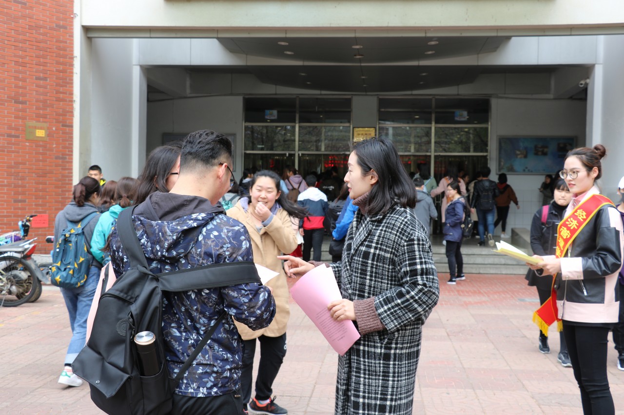 宣传包括就业流程、创业政策、“三支一扶”与“大学生志愿服务西部计划”基层就业项目、应征入伍等四个主题,线下采用发放宣传资料、悬挂横幅、公寓LED屏和海报展示形式,线上通过校内新闻网、就业网、微信公众号、QQ群等形式同步推送。活动现场,就业中心和各学院负责就业的辅导员耐心细致地向同学们答疑解惑。