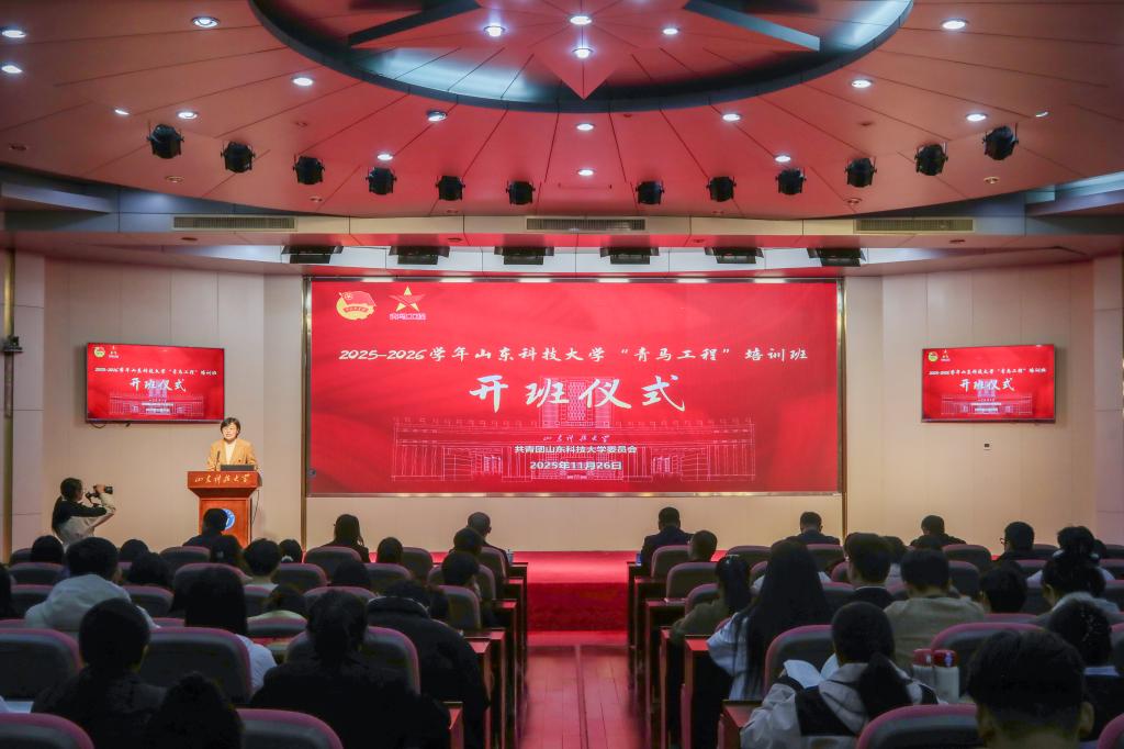 为深入贯彻落实习近平总书记关于青年工作的重要思想,着力培养青年政治骨干,11月26日下午,山东科技大学2025-2026学年“青年马克思主义者培养工程”开班仪式在逸夫讲堂举行。校党委常委、副校长诸葛福民,青岛市团校分管日常工作的副校长、党总支书记曲成伟,机关一党委书记兼组织部副部长秦昌盛,党委宣传部副部长韩韬略,学生工作处副处长靳凯,研究生院副院长刘松出席开班仪式。开班仪式由校团委书记高一丹主持。