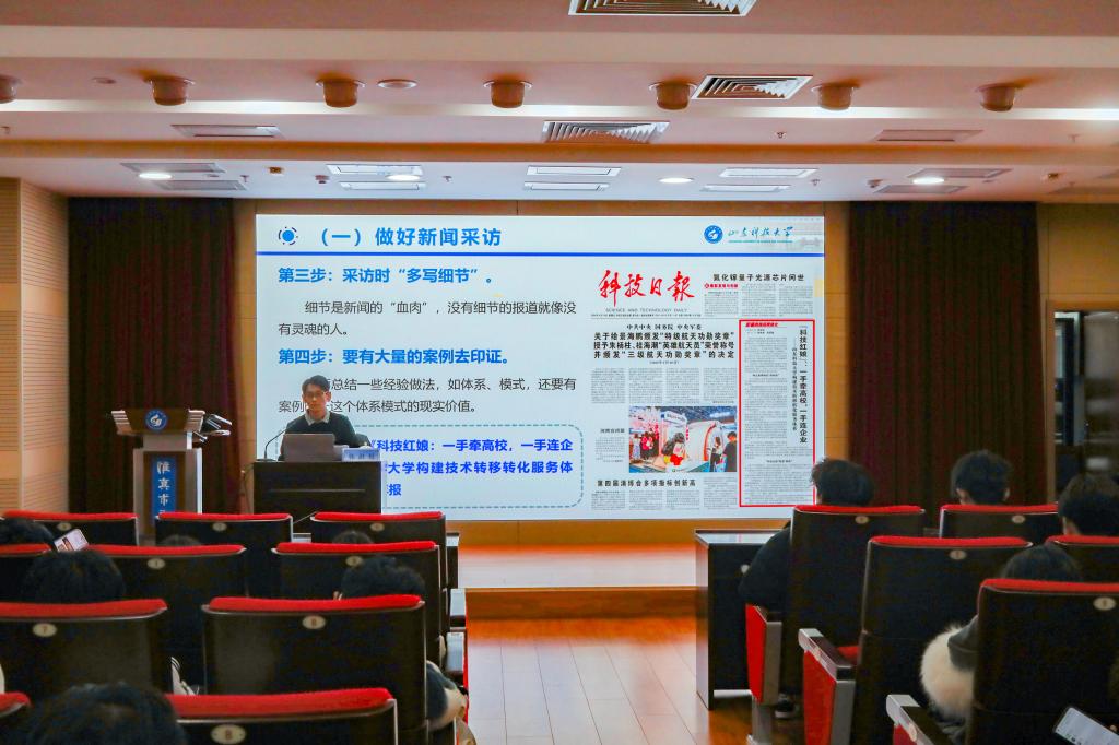 12月20日下午,“琢宣匠心 炼技赋能”共青团骨干宣传技能提升专题培训在图书信息中心尚学讲堂举办。本次培训聚焦新闻线索采写与摄影摄像实操两大核心内容,特邀学校党委宣传部(融媒体中心)记者韩洪烁、青岛生花绘影文化传媒有限公司资深摄影师梁佳华为校团委宣传部、山海泉网络文化工作室宣传骨干作新闻宣传工作专题培训。专题培训由校团委耿倩主持。
