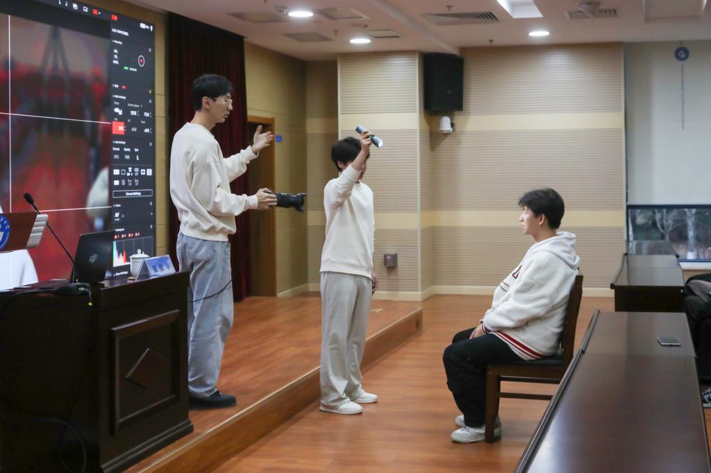 随后,梁佳华带来《摄影摄像技术基础》实操培训,内容兼具理论性与实用性。梁佳华用通俗的语言讲解光圈、快门、感光度的原理,分析广角、长焦等不同焦段镜头的适用场景,介绍了全景、特写等景别的运用及对称、三分线等构图方法,并现场演示了PS、剪映等图像、视频处理软件的实用功能。互动环节,两位同学上台担任模特和助理,梁佳华现场演示不同光照和角度下的拍摄效果,帮助学员直观理解不同光线下的拍摄要点,台下学员们纷纷拿出手机、相机模仿拍摄,学习氛围十分浓厚。
