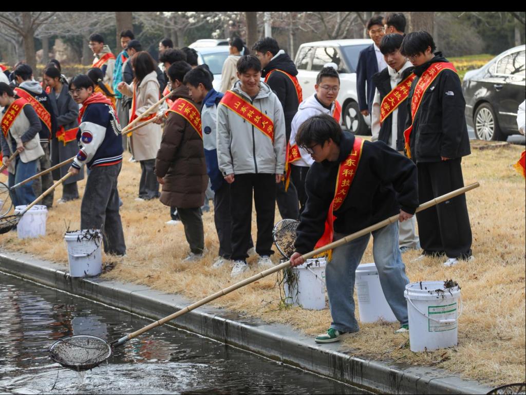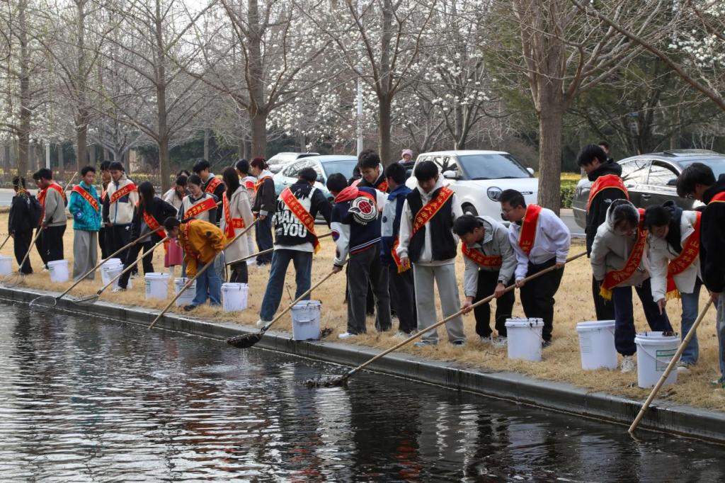 同时为引导同学们进一步感知保护水资源的重要性,学校开展了保护“守护墨水河畔,共筑美丽校园”活动。墨水河畔,志愿者们统一集结,分组在沿岸开展打捞工作。同学们手持工具,以实际行动践行生态责任,为助力实现“水清岸绿”的校园环境贡献青春力量。