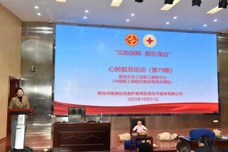 为普及应急救护知识,提升教职工应对突发状况的现场急救能力,10月31日下午,由校工会组织的“心肺复苏(CPR+AED)”专项培训在我校9号楼144报告厅成功举行。本次活动特邀中国职工保险互助会青岛办事处资深专家连锋主任医师担任主讲。