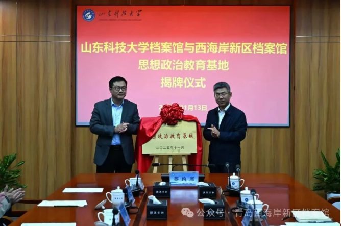 11月13日,新区档案馆与山东科技大学合作共建签约暨基地揭牌仪式在山东科技大学会议室举行。此次活动以“资源共享、优势互补、协同创新”为主题,致力推进校地档案及相关领域紧密合作,携手为档案科技创新、思政教育赋能及档案工作高质量发展注入崭新动力。
