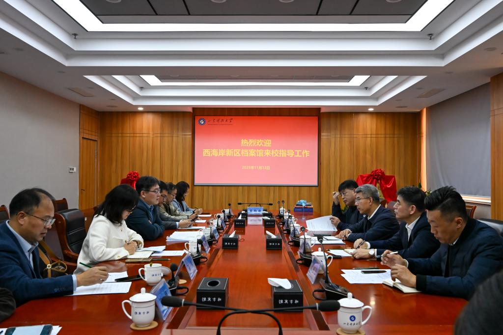 薛增峰重点介绍了新区档案馆的主要功能、机构设置、馆藏档案、编辑研究等方面的情况,希望与学校在档案信息化建设、档案编研、地方文化挖掘与整理、科技创新方面发挥各自优势,更好地发挥档案存史资政育人功能。