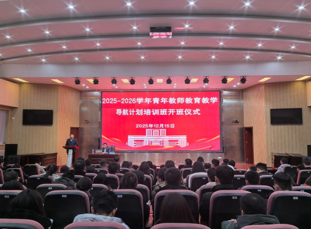 12月15日,学校举办2025-2026学年青年教师教育教学导航计划培训班开班仪式。学校党委书记王君松出席仪式并作专题报告,副校长阳凡林作开班动员讲话。