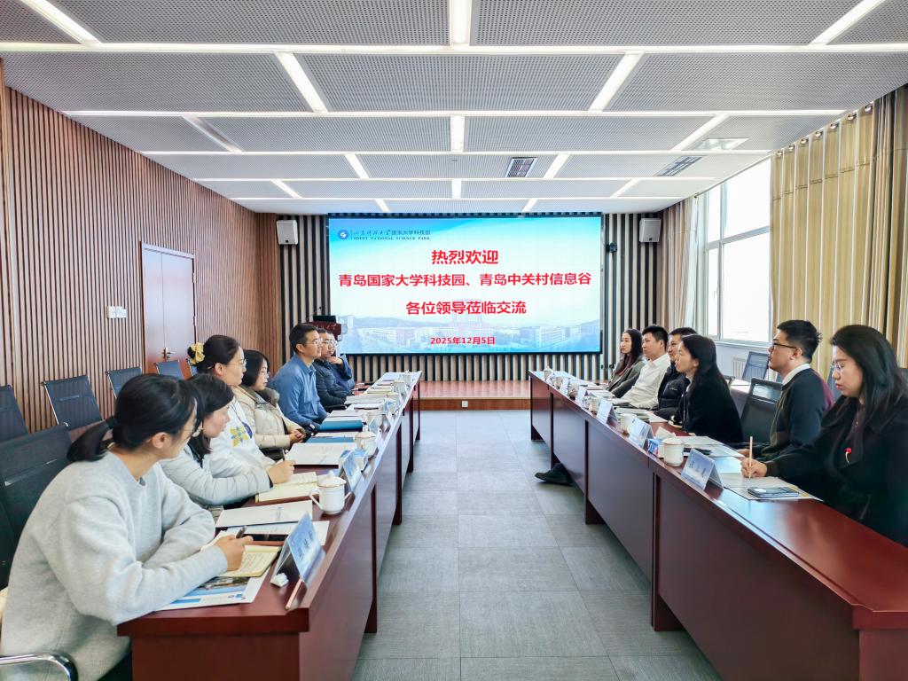 修湖对于琛一行的来访表示欢迎,并介绍了我校的科研发展情况和国家大学科技园的运营团队、平台资源与服务功能等情况。于琛介绍了青岛国家大学科技园的协同创新模式,就深化机器人产业发展、人才培养、搭建校企合作等方面进行交流。双方围绕国家大学科技园优化重塑等建设工作的核心职能,就推进高校科技成果转化信息交流,推动区域科技创新与产业升级等方面进行进一步交流。