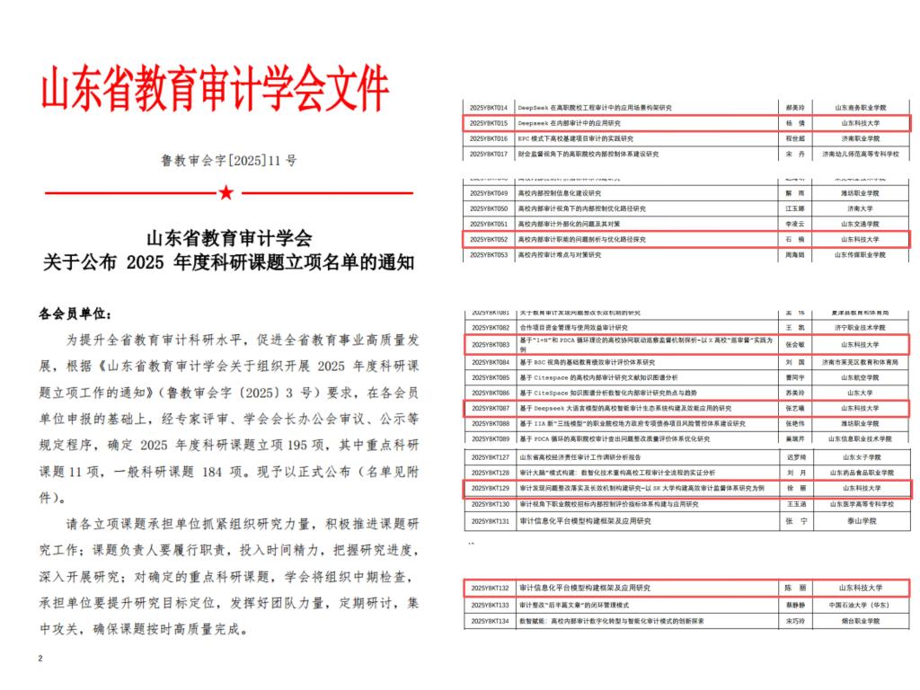 图18. 6项课题获山东省教育审计学课题立项