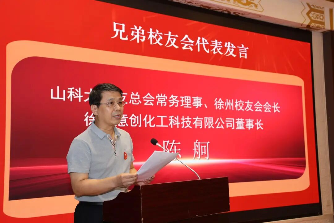 地质1971级校友、原枣庄市政协副主席李华中致辞。他深情追忆求学岁月,呼吁校友传承科大精神,为滕州校友会和母校发展添砖加瓦,为区域经济社会发展贡献力量。刚参加完九三阅兵观礼仪式归来的全国人大代表、全国劳动模范、机电2000级校友王亮分享阅兵感悟,有幸观礼祖国阅兵,受阅官兵的英姿是祖国强盛的最好证明,这股力量激励着我们每一位青年,以更昂扬的姿态奋斗前行!山东科技大学校友总会副会长、青岛校友会会长张殿游,校友总会副会长、泰安校友会会长李天忠,校友总会副会长、产业金融校友会副会长赵益群,校友总会副会长、澳大利亚校友会会长张军,徐州校友会会长陈舸等兄弟校友会代表为活动的顺利召开表示祝贺,并表示今后将持续加强校友会之间的沟通联系,为校友们牵线搭桥、链接资源,为母校和社会发展贡献力量。