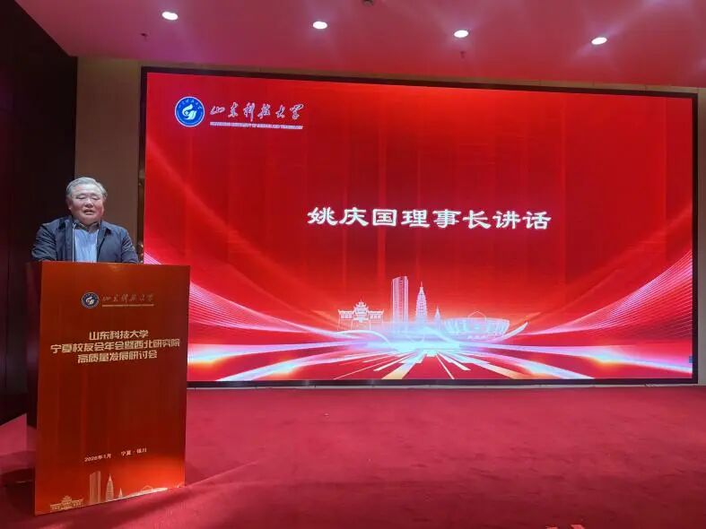 山东科技大学校友总会会长、西北研究院理事长姚庆国出席会议并讲话,他对西北研究院2025年在赋能地方产业升级、推动科研成果转化等方面取得的成效给予高度评价。他强调,西北研究院应继续聚焦区域发展需求,深化产学研融合,为学校“双一流”建设和西北地区高质量发展作出更大贡献。他希望宁夏校友会能进一步发挥桥梁纽带作用,团结凝聚广大校友,共同为母校发展建言献策、汇聚资源。同时西北研究院与宁夏校友会应以此为契机,进一步加强联动,凝聚校友力量,共同搭建高水平的合作与发展平台,助力学校事业与地方经济协同共进。