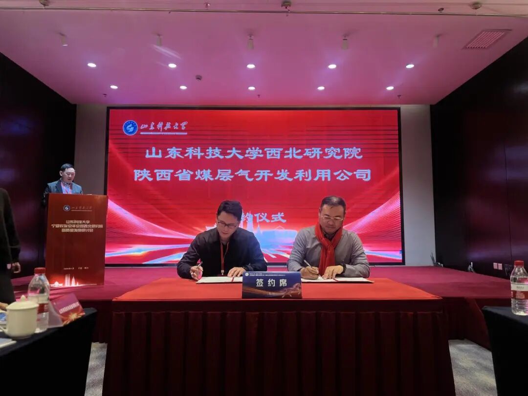 西北研究院高质量发展研讨会阶段,研究院院长刘伟致开幕辞。副院长任大伟汇报了研究院年度工作进展与成果。会议期间举行了理事会成员纳新仪式、理事单位代表发言及合作签约仪式,山东科技大学西北研究院与陕西省煤层气开发利用有限公司,宁夏鲁塞科技有限公司与泰安市栗烊矿山设备有限公司代表现场分别签约。