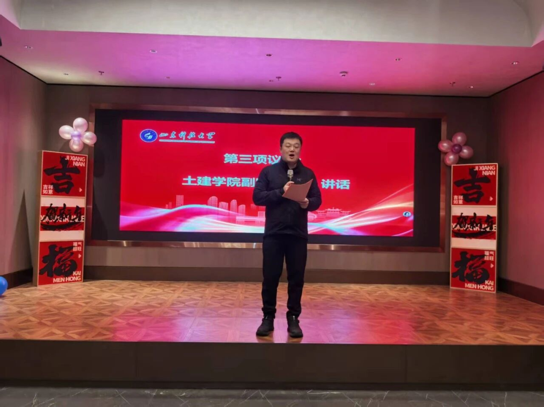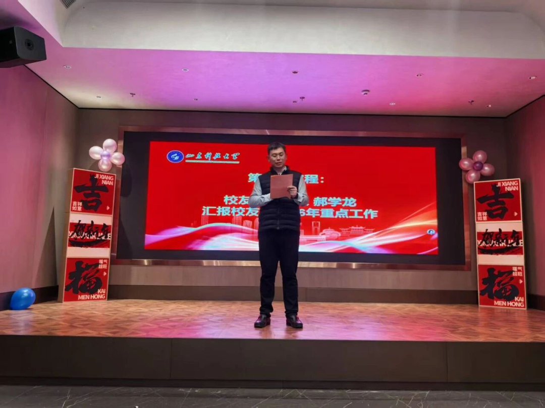 土建学院副院长秦哲向全体校友送上新春祝福。他介绍了学院在人才培养、科研创新以及学科建设方面取得的最新成果,并对校友们在各行各业展现出的责任担当与卓越成就给予了高度肯定。他表示,校友是母校最宝贵的财富,学院将一如既往地支持校友会工作,深化合作,共荣共进。