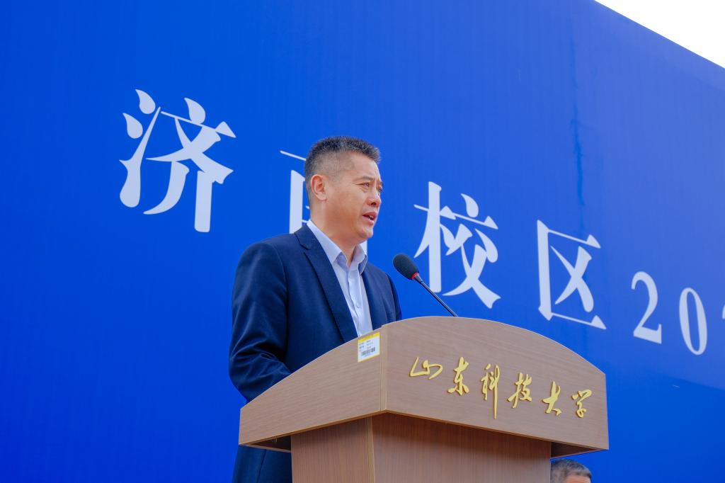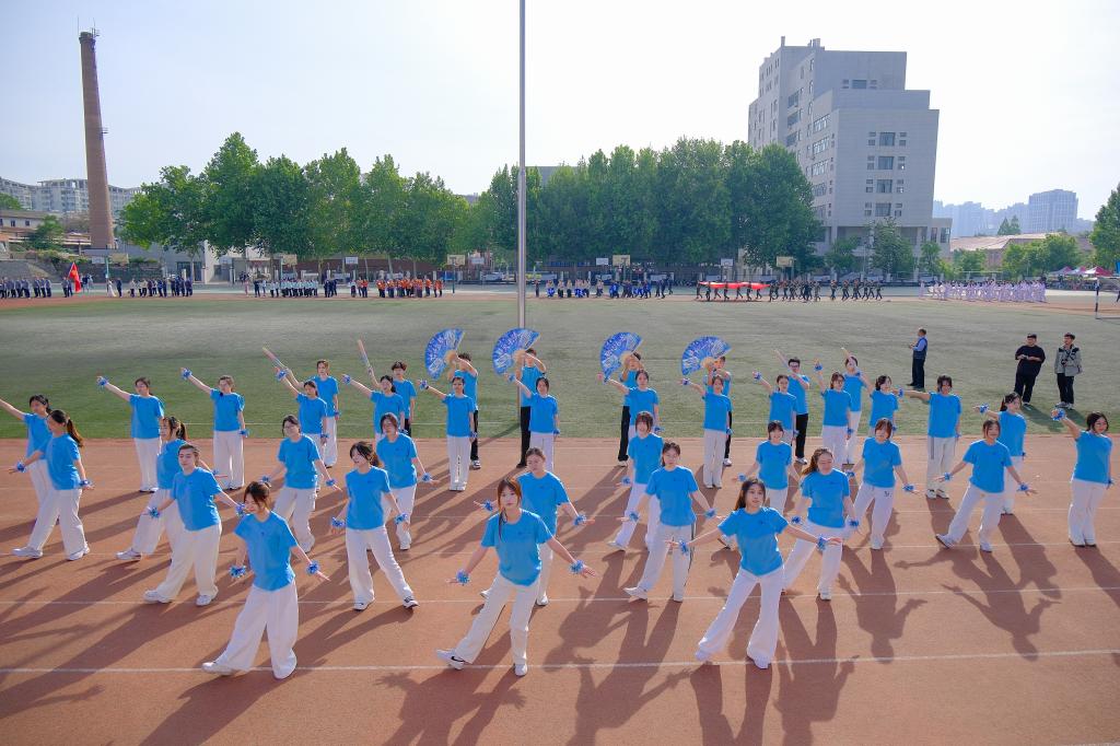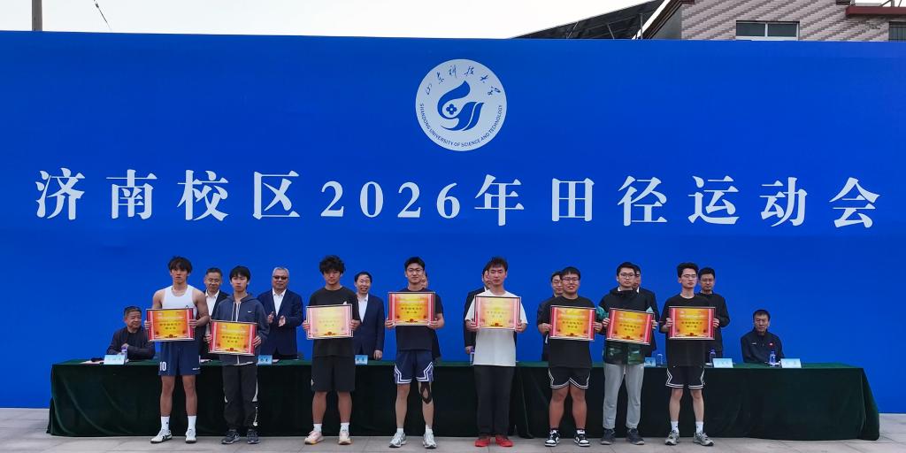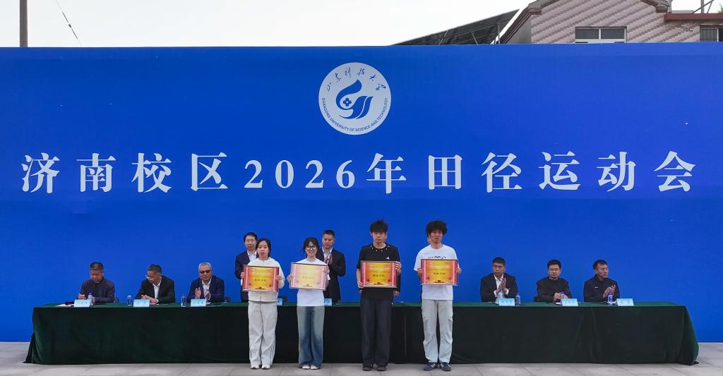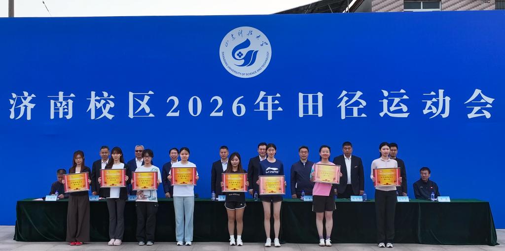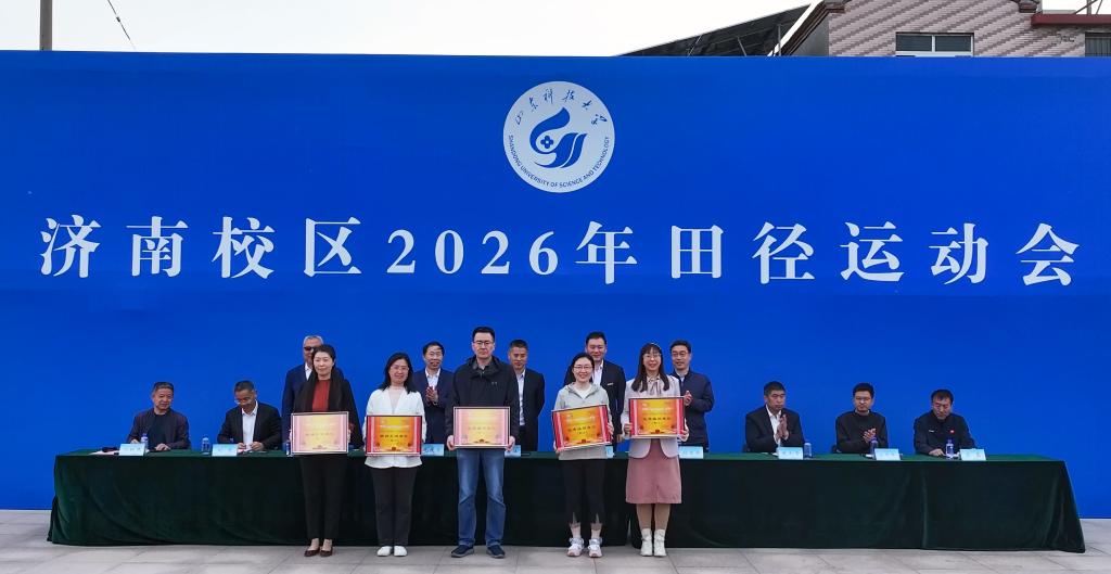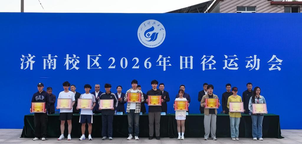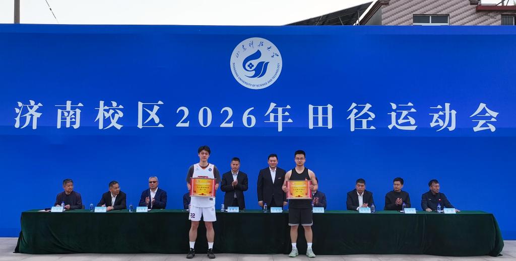 4月28日,济南校区举办2026年田径运动会。校党委副书记郭益灵、校区党委班子成员出席开幕式并在主席台就座。开幕式由校学生工作处副处长(驻济)胡宝征主持。