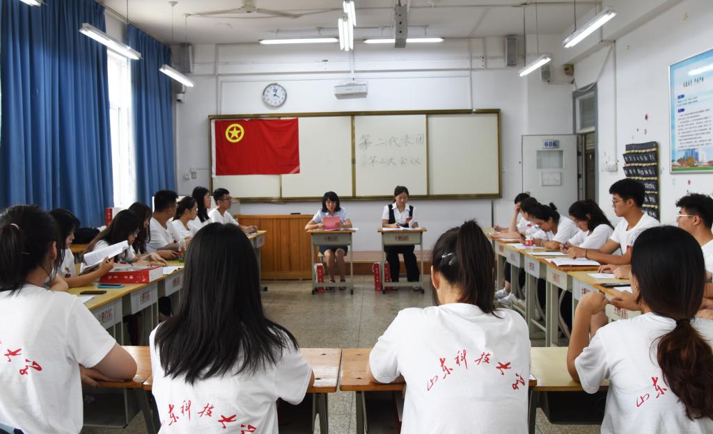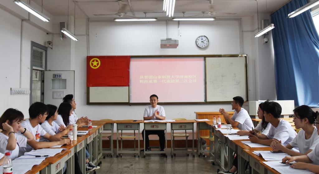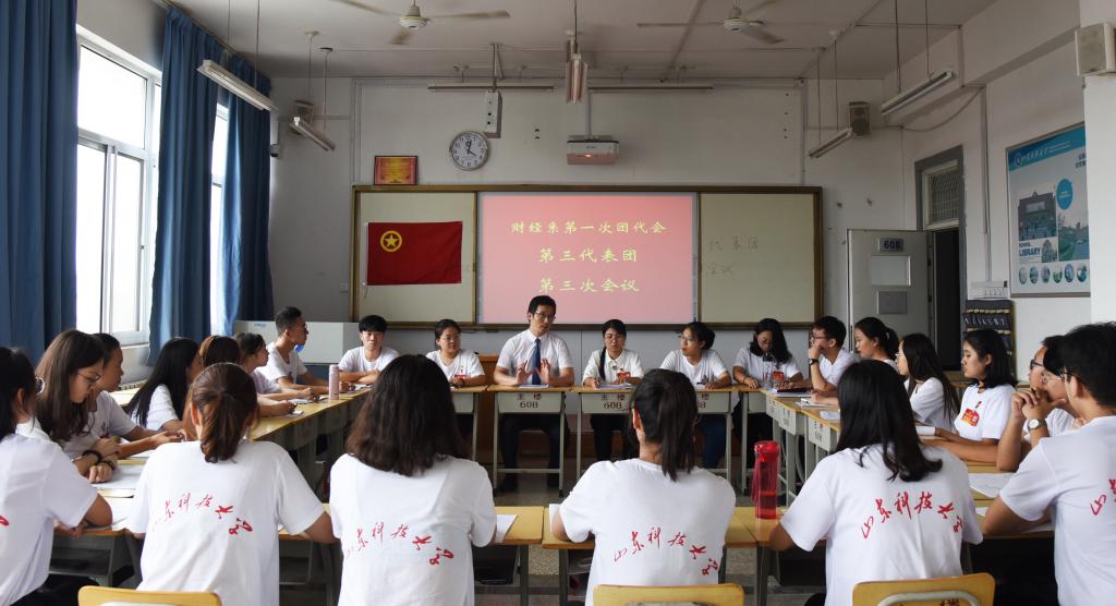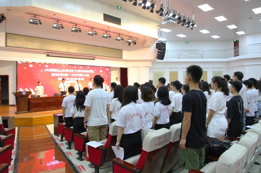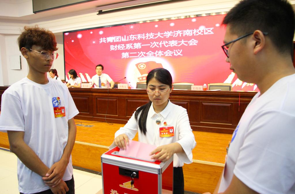 在慷慨激昂的《光荣啊,中国共青团》中,共青团山东科技大学济南校区财经系第一次代表大会圆满完成各项议题。