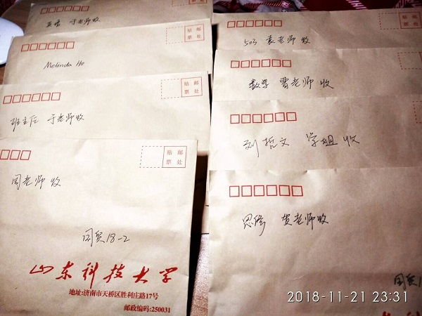 每个团支部都精心准备了视频和PPT,通过组织各种活动,让同学们感悟成长,感悟父母在成长过程中的默默付出,感悟老师的悉心教导。会计学18-4班组织同学在明信片上写出自己想感恩的人、想说的感恩的话以及他们之间的感恩小故事,班级同学与父母连线通话等活动。会计学18-1班每位同学录一段小视频,发给自己的父母,感恩父母的养育。金融学18-3班分享一篇感恩父母的文章,并组织同学写下感恩父母的话。会计学18-3班组织同学进行“一块五”的游戏,现场与自己的父母电话连线,跟自己的父母说一分钟的感恩的话活动。国贸18-2班则组织班级同学撰写感恩小纸条,为每位老师送上感恩的祝福。