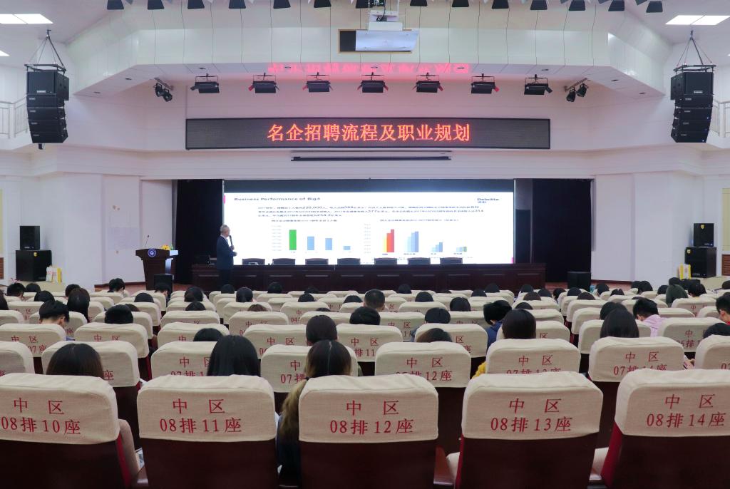 曲悲岩分享了担任德勤中国北方区校园招聘高级经理的经历,鼓励同学们提前准备好职业规划,以积极向上的态度面对未来的职业生涯。接着,他从职能服务、职业发展路径、薪酬待遇体系等方面向同学们介绍了中国四大会计师事务所,并详细介绍了德勤专业化行业团队及广泛的服务网络。结合中国四大会计师事务所的招聘要求,曲悲岩着重从结构化简历的准备、推理模式的笔试要求及小组面试模型等方面讲解了相关技巧,他建议同学们要勤于思考锻炼思维能力、抓住重点把握中心、增强毅力面对未来道路。