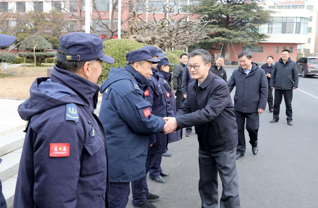 彭延军一行先后来到校门值班室、教学楼、水电暖管理中心、学生公寓等值守岗位,详细了解春节期间各工作岗位的运行情况和保障情况,关切询问大家的工作和生活状况,感谢他们放弃与家人团聚的机会,坚守工作岗位,为校区师生度过一个安全、和谐的春节提供有力保障,并为他们送上慰问品,叮嘱他们合理安排作息时间,注意防寒保暖和自身健康安全。