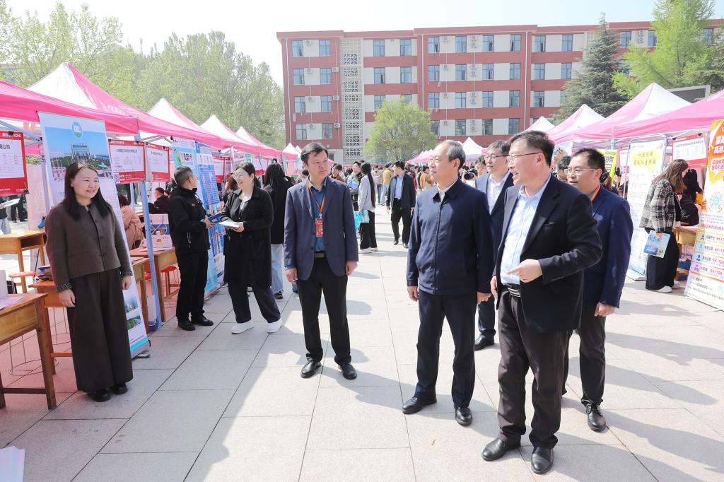 春风携暖意,就业正当时。4月10日上午,山东科技大学泰安校区“‘就’选山东‘位’你而来”2026年春季校园双选会在西校园礼堂前广场举行。校党委副书记刘明永深入会场,了解企业招聘需求和毕业生简历投递情况,指导校园招聘和就业服务工作。校学生工作处处长尹立明、校区党委书记吴正龙、校区主任彭延军、泰安市公共就业和人才服务中心副主任叶忠生等到场指导。