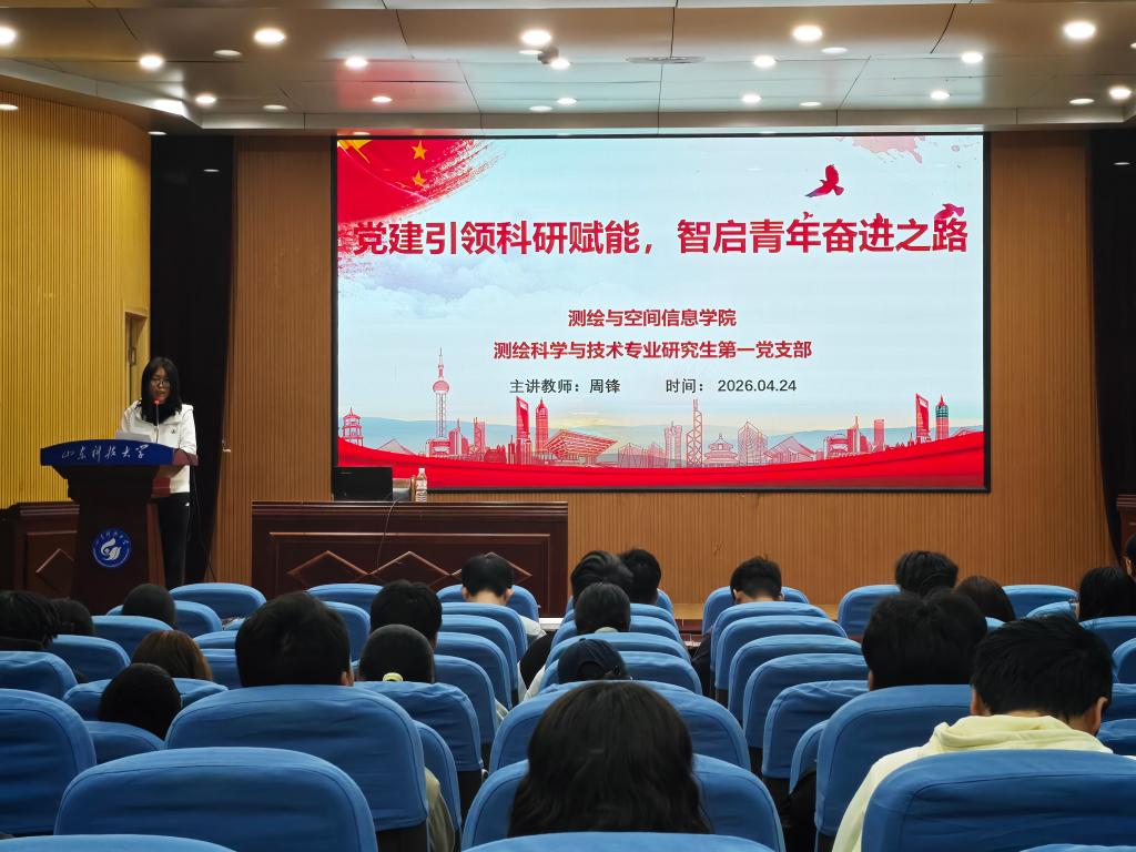 4月24日下午,测绘科学与技术专业研究生第一党支部策划的“AI赋能卫星导航”专题讲座在J6-434报告厅顺利举办。本次讲座以引导师生将个人科研成长与国家测绘事业发展紧密结合为核心目的,特别邀请学院周锋老师主讲,作题为《AI赋能卫星导航:如何让科研学习更高效》的专题报告,学院百余名师生到场聆听,讲座由支部书记曹梦婷主持。