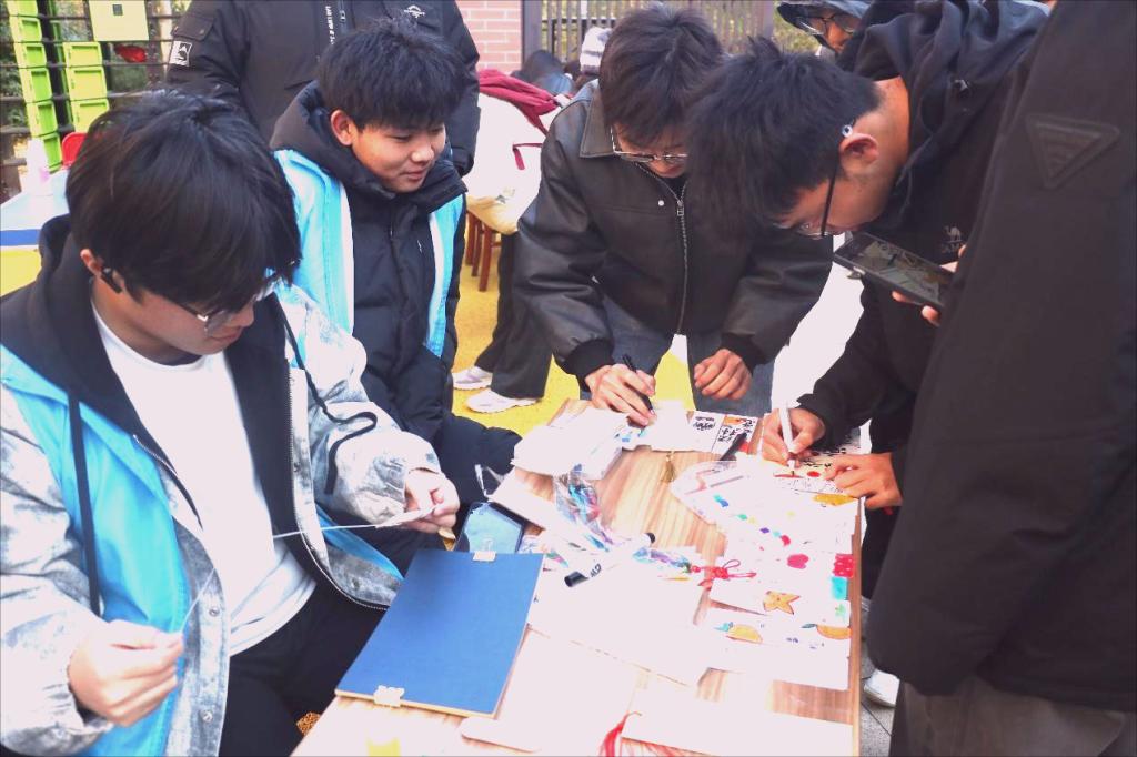 互动市集区同样热闹非凡。“旧书换新友”摊位前排起长队,同学们携书而来,以书会友。有同学在书签上分享道:“《人生海海》这本书教会我守护内心的正义与善良,笑对人生苦难,与诸君共勉!”,“书籍漂流架”上也陆续有同学留下自己的书籍与联系方式,期待与更多书友交流思想。