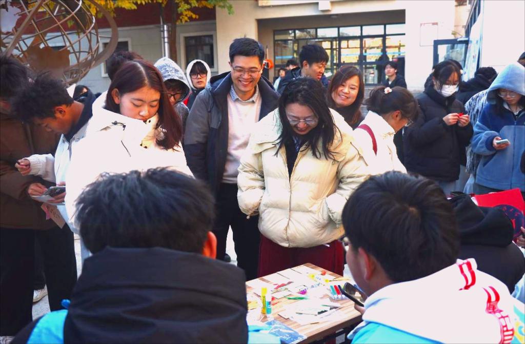 11月18日下午,由学生工作处主办、地球科学与工程学院承办的“翰墨飘香·青春雅集”——青春文化互动市集在GC3宿舍楼学生社区U+空间热闹开市。三百余名师生展书籍、挥翰墨、剪窗花、编绳结,在冬日校园里共赴一场融合阅读、书法与非遗体验的“文化嘉年华”。