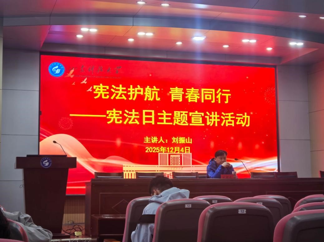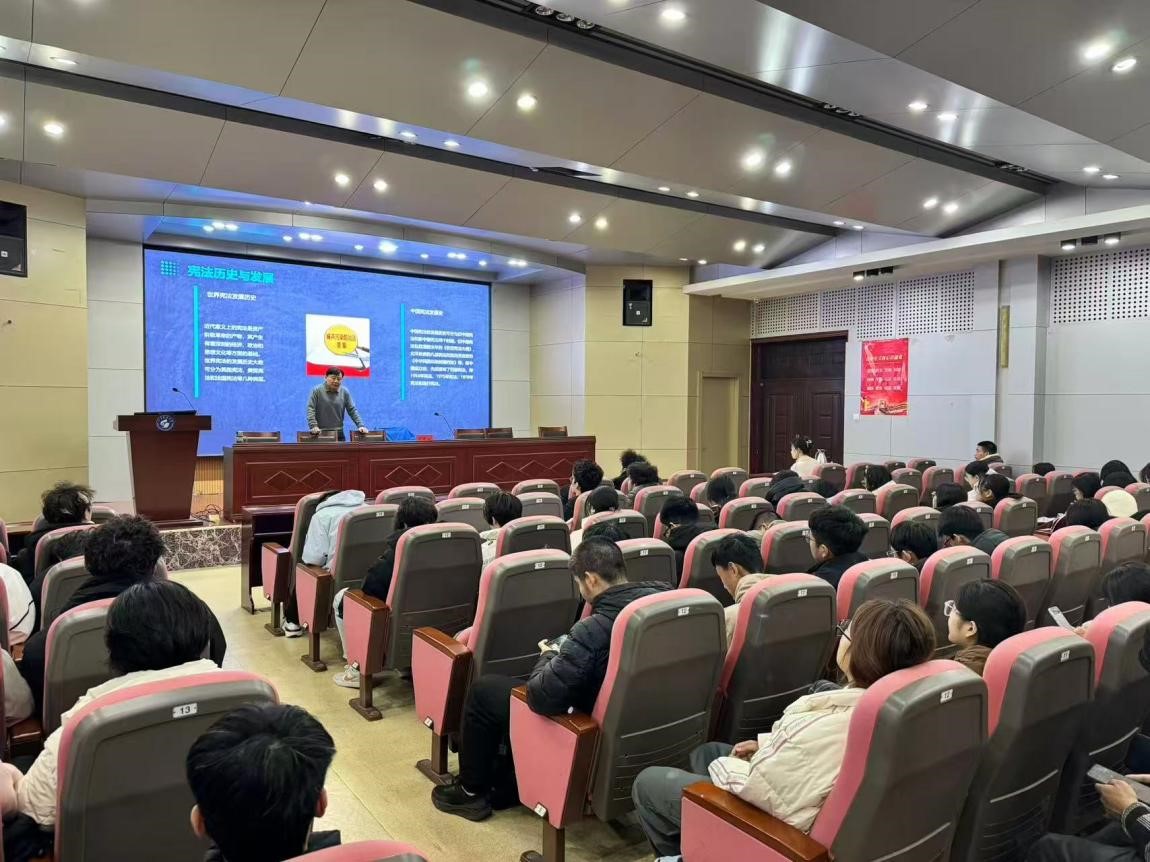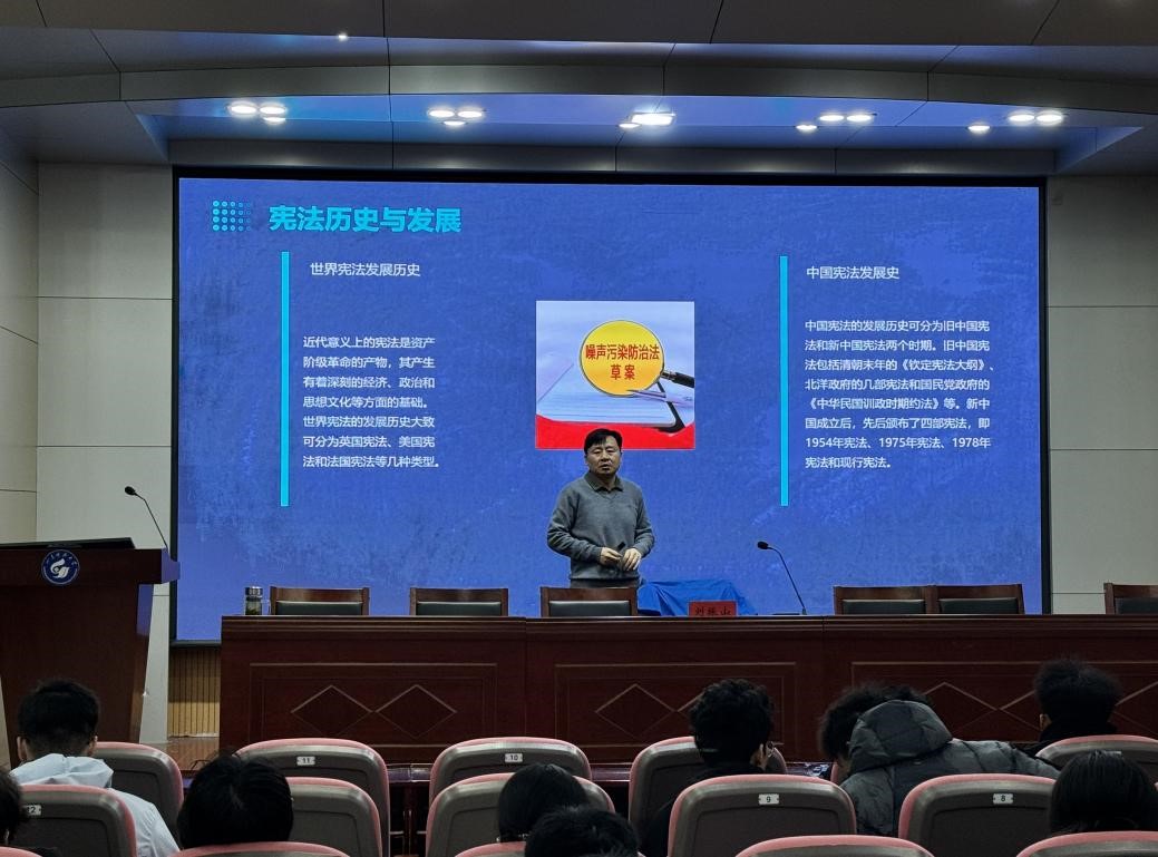 12月4日,第十二个国家宪法日来临之际,为深入学习宣传宪法知识,进一步增强师生的宪法意识和法治观念,地科学院特邀文法学院副院长刘振山副教授,举办了一场以“宪法护航,青春同行”为主题的宪法宣讲活动。全院师生代表齐聚一堂,共同接受了一场深刻的法治思想洗礼。