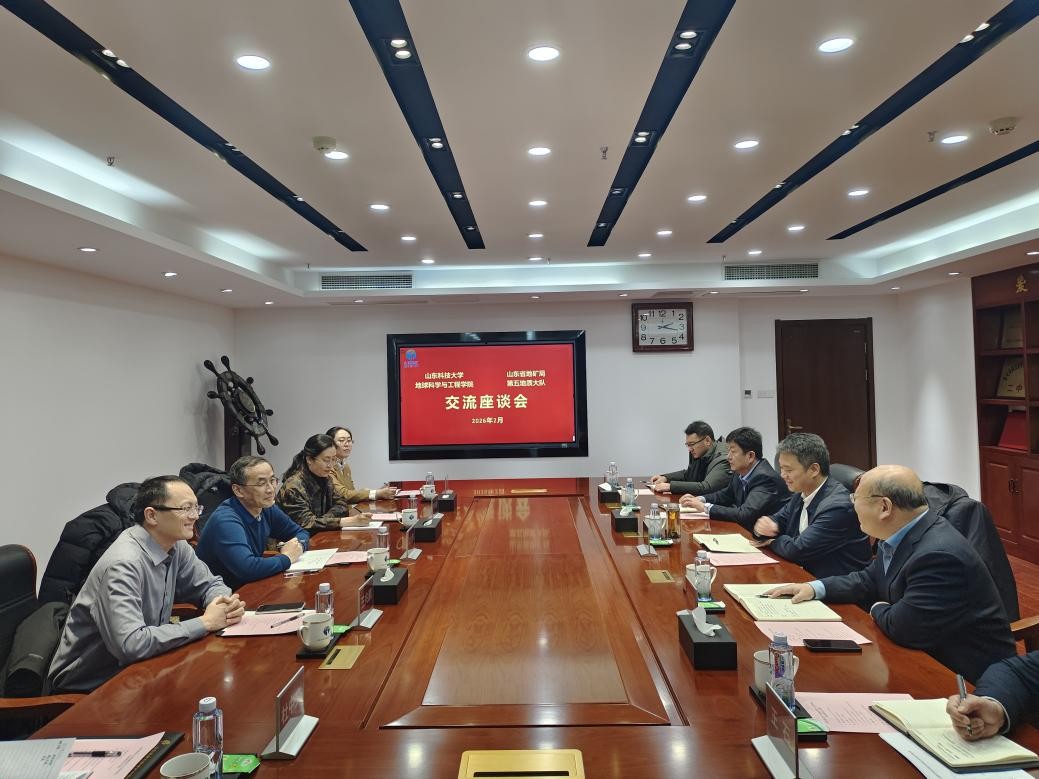 在山东省煤田地质局第三勘探队,党委书记、队长李富强,党委专职副书记王涛,副队长张立军、任恩明,纪委书记韩汶妤等参加座谈。李富强对常象春一行表示热烈欢迎,详细介绍了部门设置、项目开展情况及发展规划。常象春详细介绍了学院师资力量、平台建设及科研成果等方面内容。座谈会围绕选派青年教师到队实践锻炼、相关合作项目开展进度、科研奖项联合申报等议题进行了深入讨论交流,争取科研创新与人才培养实现进一步的合作共赢。