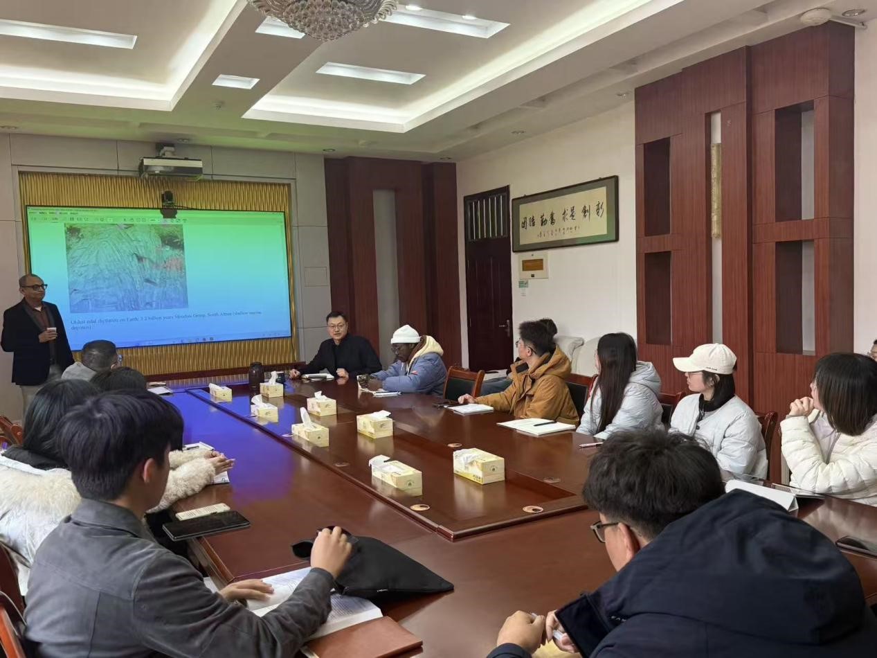 Rajat Mazumder教授首先以其团队的研究成果为例,深入浅出地阐释了深海潮汐韵律的形成机制、识别方法及其在反演地球早期演化历史中的关键作用,详细介绍了通过分析深海沉积记录中潮汐韵律的周期性变化,探究地球自转速率变迁、地月轨道演化等科学问题的技术路径。同时,他聚焦地质记录中震积岩的识别特征与成因分析,结合全球多地的地质实例,讲解了震积岩在重建古地震事件、分析区域构造演化中的应用价值,为现场师生提供了全新的科研思路与研究视角。