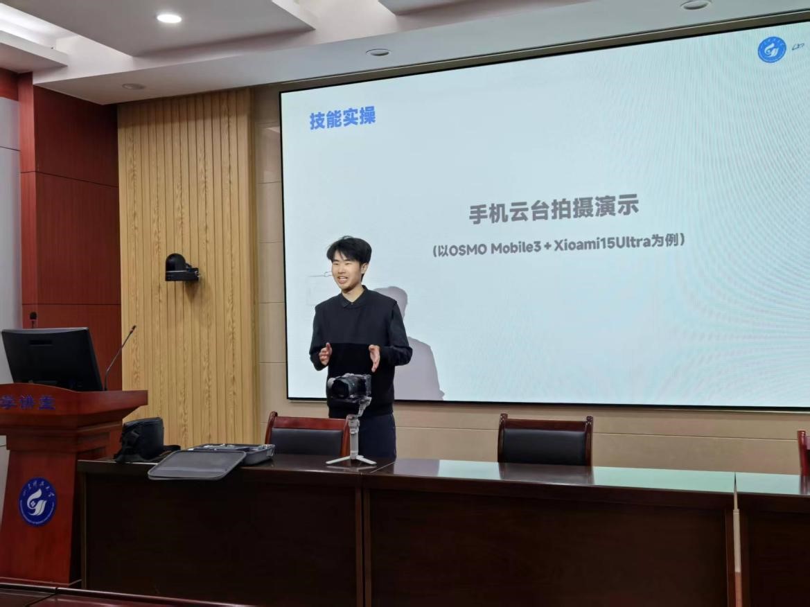 在技能讲解环节,系统介绍了从需求策划、脚本撰写、素材拍摄、后期制作到审核反馈的全流程工作逻辑,并围绕实操关键点展开讲解:野外拍摄中,通过稳定器、领夹麦等设备保障音画质量;剪辑创作时,注重“黄金前三秒”原则,合理控制镜头时长,提升信息传递效率;文案撰写方面,注重专业术语的通俗化表达,搭配与场景相契合的配乐;传播推广环节,结合校园流行元素与互动话题,增强内容的传播力和感染力。