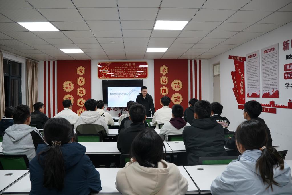 为增强学生网络安全意识、引导文明理性上网、提升不良信息辨别能力,助力树立正确网络观,10月19日,机电学院学生会在“机YU驿站”学生一站式社区,举办以“‘机’敏辨是非,‘电’亮网络魂”为主题的网络文明知识学习活动,机电学院新闻采编部部长赵正阳担任主讲人,学院各班级代表参加此次活动。