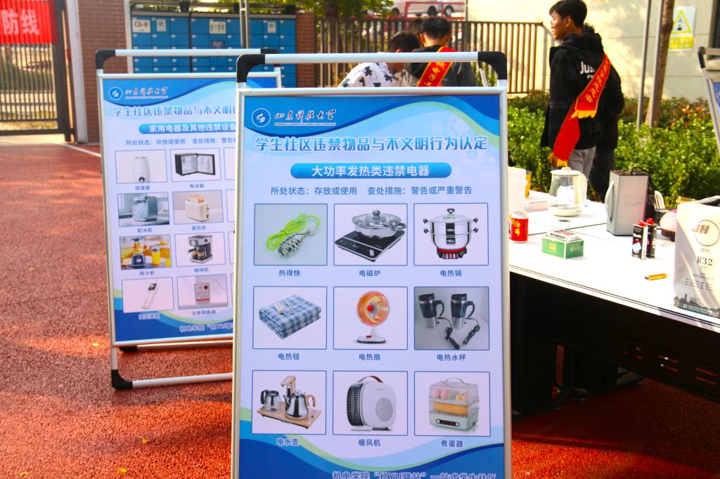 为进一步强学生安全防范意识,清晰界定学生社区违禁品范畴并明确其潜在危害,从源头遏制安全事故发生,10月21日,机械电子工程学院自律会于GC6-8公寓楼U+空间,组织开展“明晰安全隐患 共筑平安防线”学生社区违禁品警示宣传活动。