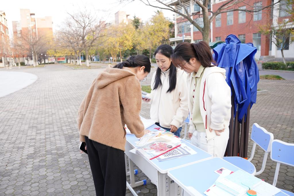 尽管深秋寒意渐浓,志愿者们的热情却丝毫不减。活动当日清晨7点,工作人员便已集结完毕,有条不紊地开始了场地布置与义卖物品的搬运。活动开始后,志愿者们通过往期活动影像,热情地向同学们介绍特殊儿童群体,讲解活动初衷。义卖摊位前,由各社团精心制作的手工扭扭花、书签、剪纸等物品琳琅满目,吸引了大量同学驻足挑选。