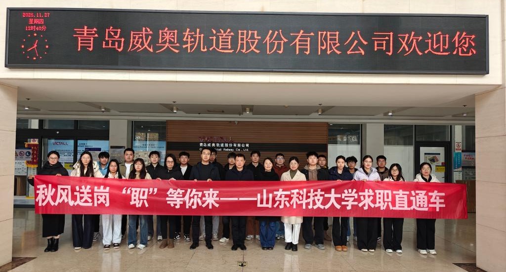 为助力2026届毕业生精准对接优质岗位,11月27日上午,山东科技大学就业指导中心盖康、机电学院学工办主任樊玉华、辅导员傅广程一行赴青岛威奥轨道股份有限公司,开展“秋风送岗‘职’等你来——求职直通车”活动,搭建校企人才对接桥梁,让学生实地感知轨道交通行业生态与企业发展势能。