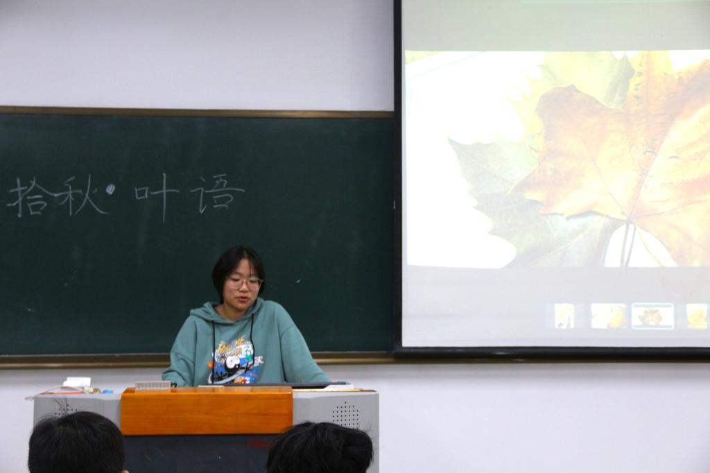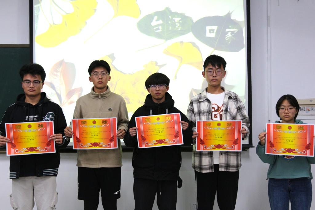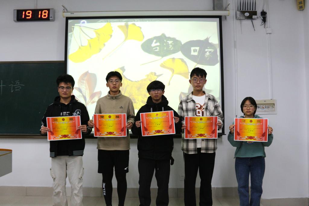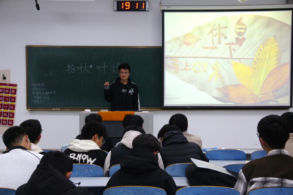活动在惬意的秋日采风中拉开帷幕。同学们在校园中寻觅、拾起心仪的落叶,将自然的馈赠化为创作的素材。在随后的创作环节中,大家以巧思妙手对落叶进行拼贴组合,方寸之间尽显对校园生态的细致观察与独特感悟。创作完成后,参与者们围绕作品的美学构思与生态意涵,进行了限时30秒的即兴演讲。最终,经评委公正评议,季筠博同学拔得头筹;孙灏灏、梁仁骞同学荣获二等奖;宋睿哲、张宏翼同学获得三等奖。
