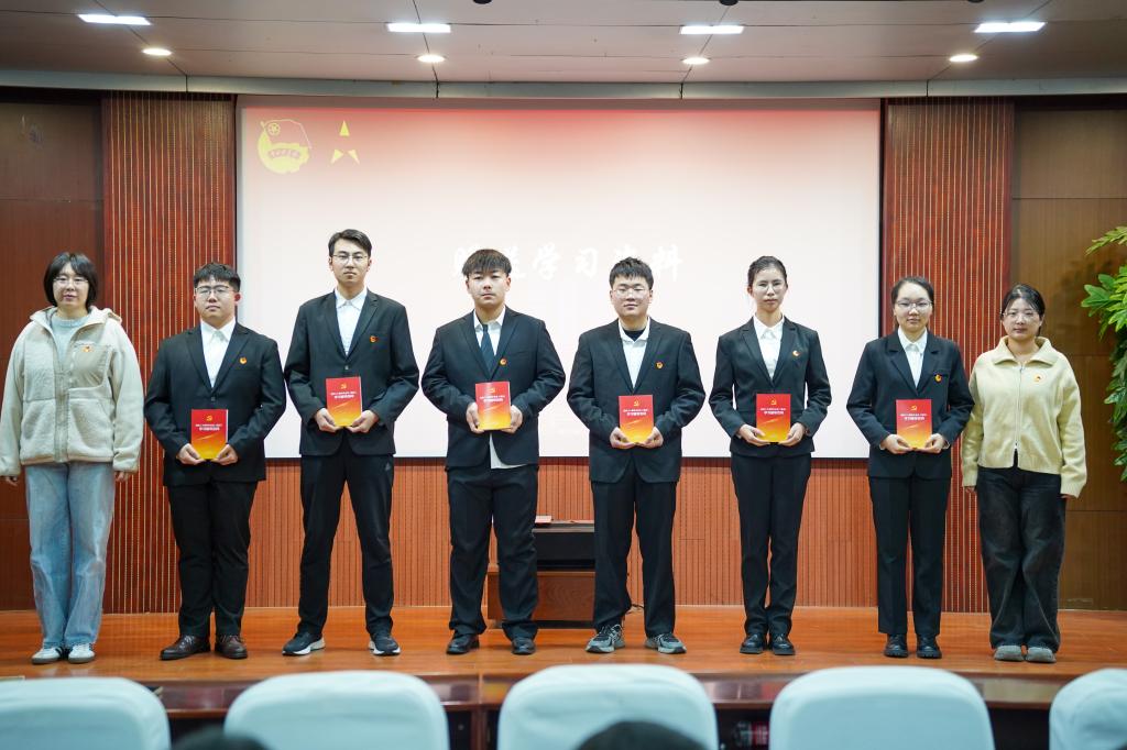 开班仪式上,宋阔宣读《机电学院2025-2026学年“青马工程”基础班培训方案》,从理论学习、交流研讨、红色教育、实践锻炼、志愿服务等方面,为学员明晰了培训方向与成长路径。随后,辅导员曲岩、罗雨婷为6名学员代表赠送《党的二十届四中全会<建议>学习辅导百问》。优秀结业学员代表薛泽藩、新学员代表白远兴分别发言。开班仪式在激昂的团歌声中圆满结束。