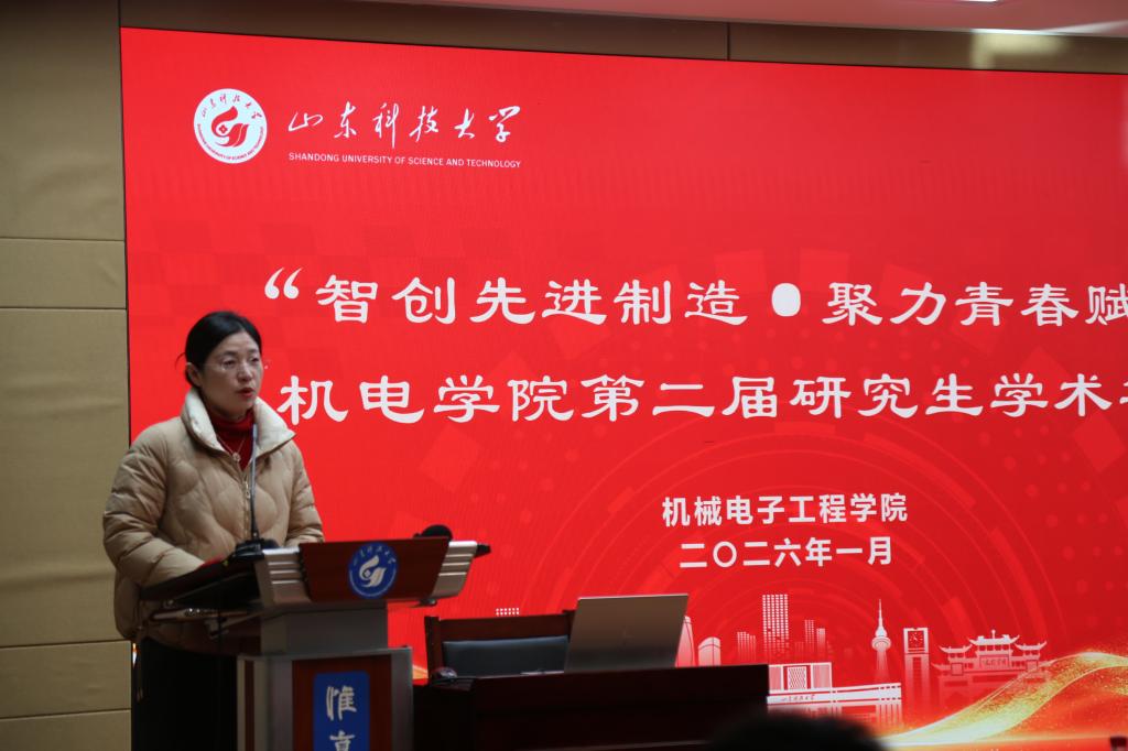 1月10日,机电学院于图书信息中心尚学讲堂成功举办“智创先进制造·聚力青春赋能”第二届研究生学术年会。学校研究生院副院长刘松、机电学院党委副书记兼副院长刘梅月参加年会开幕式。机电学院机制系教授钟佩思、储能学院泰山学者青年专家崔伟伟教授、机电学院泰山学者青年专家付云飞教授、院长助理吕玉廷教授、机电系副教授吕馥言担任评委。开幕式由学生工作办公室主任(团委书记)樊玉华主持。