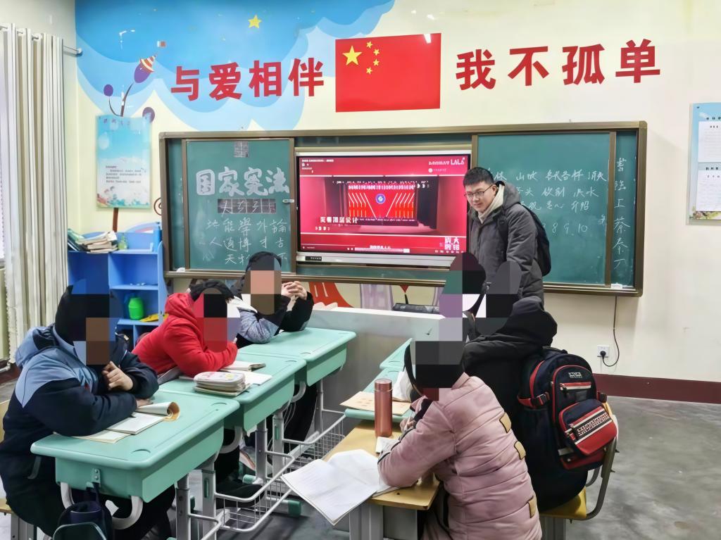 走进莘县特殊教育学校,一间间教室里满是温柔的互动。实践队员们俯身与孩子们亲切交流,用耐心的倾听回应孩子们的心声,用轻柔的话语解答好奇的提问,将温暖的陪伴融入每一个细节。精心挑选的励志宣传片与安全科普视频缓缓播放,舒缓的节奏、生动的画面贴合孩子们的认知特点,队员们配合学校老师轻声引导,鼓励孩子们大胆分享观后感受,让知识与快乐在视听体验中悄然传递,也让心与心的距离在交流中慢慢拉近。
