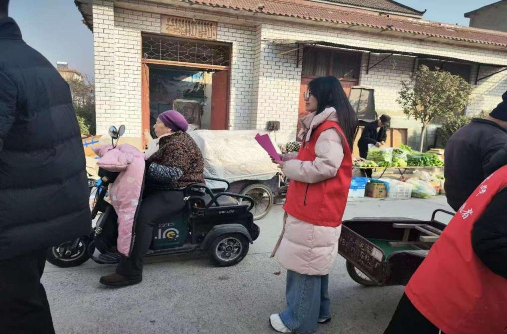 崔梦真同学于2025年1月28日在山东省菏泽市鄄城县董口镇军屯村集市开展青鸟计划志愿服务。她与其他志愿者身着志愿马甲,穿梭在年货集市的人群中,用通俗易懂的家乡话向村民普及冬季防火、防诈骗、交通安全等生活常识,重点为老年群体剖析电信诈骗真实案例,守护村民“钱袋子”。同时结合军屯村回族聚居的特点,针对性讲解冬季取暖安全、清真食品选购等内容,让宣讲贴合当地村民实际需求,现场互动氛围十分热烈。