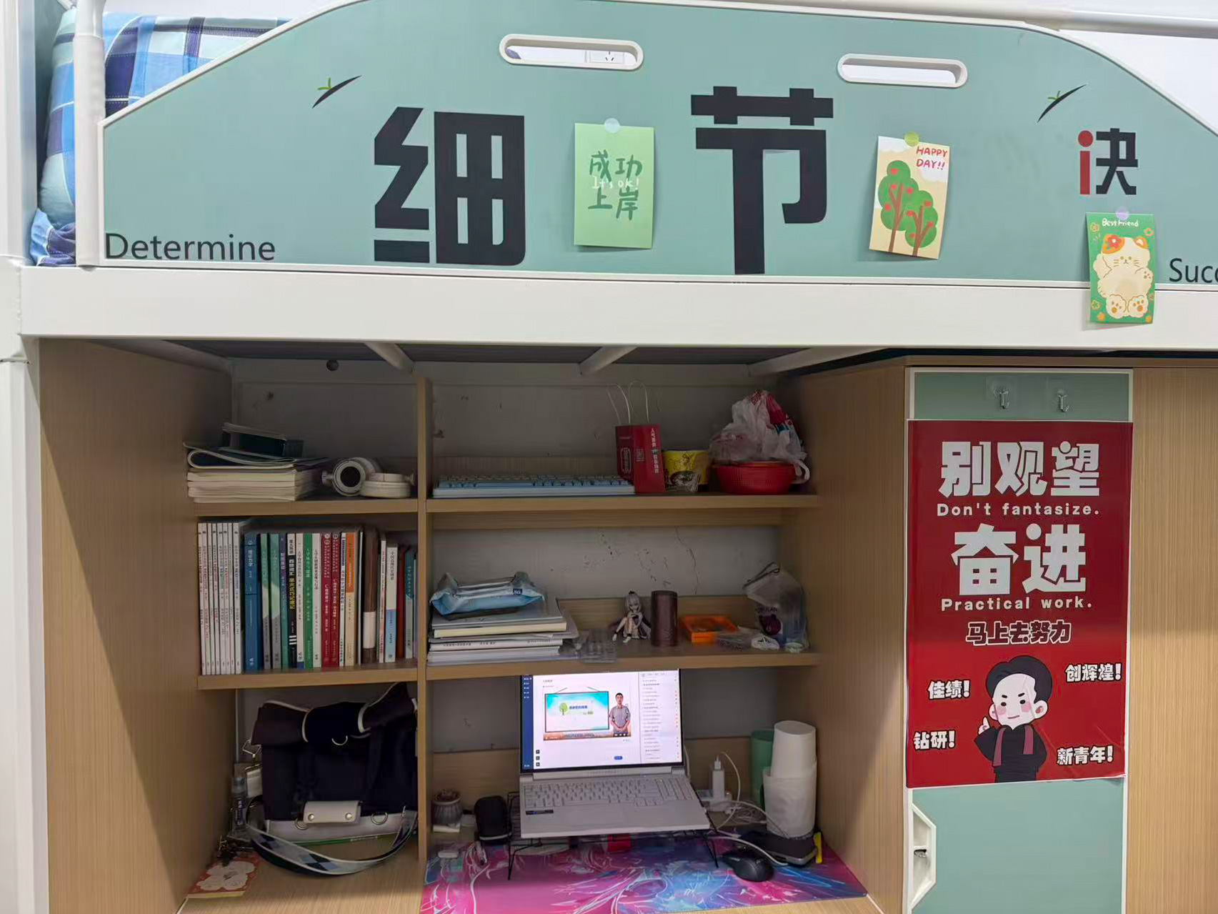 活动启动后,同学们踊跃报名、精心筹备。各宿舍锚定简约奋进、文雅励志的鲜明风格,以励志海报装点墙面、专业书籍充盈书架、特色饰物点缀空间,将青春朝气与奋斗姿态融入每一处细节,打造兼具学风与活力的成长空间。装饰过程中,成员们分工协作、动手创作,在实践中提升审美、凝聚默契。评比环节,自律会评优小组秉持公平公正公开原则,按装饰风采、内务卫生、现场解说三大标准综合打分,各宿舍清晰介绍设计理念,充分展现独特创意与精神面貌。
