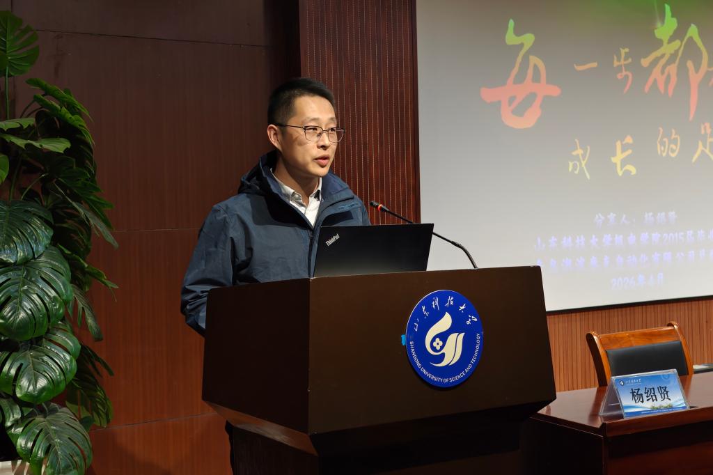 为深化校友联动,汇聚育人合力,赋能学生成长,4月14日,机电学院于J8-202学术报告厅顺利举办“每一步都是成长的足迹”校友成长经验分享会。本次活动特邀我院机械设计制造及其自动化专业2015届校友、青岛澳波泰克自动化有限公司总经理杨绍贤担任主讲人,由机电学院学生工作办公室主任(团委书记)樊玉华主持。