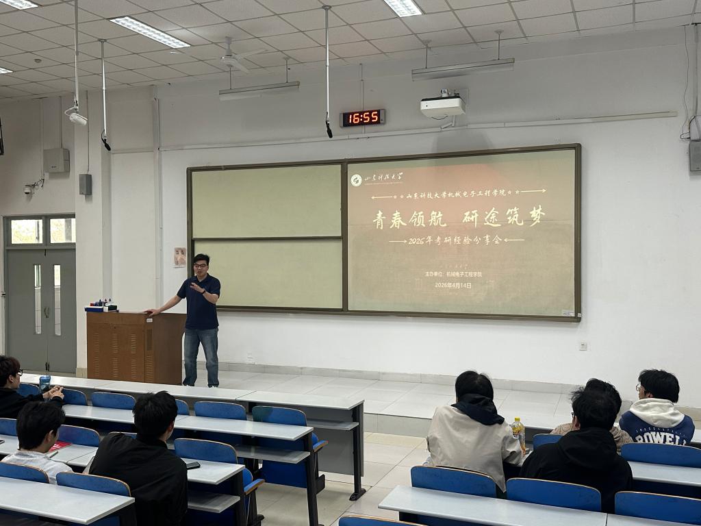 为帮助2023级机电学院考研学子明晰备考方向、掌握科学复习方法,4月14日下午,山东科技大学机电学院在1号公共教学楼228教室,面向2023级有意向考研学生举办专题考研经验分享会。本次分享会邀请汪昊天、李崇拧、李瑞宇、滕明强、张智博5位2022级成功上岸的优秀学长担任嘉宾,以亲身备考经历为2023级学生传经送宝,助力学子高效开启考研征程。