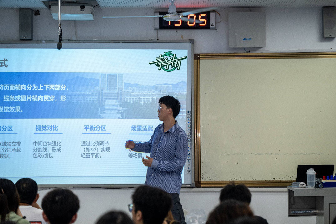 现场,武超群系统介绍了本次活动与“学在山科”文化理念的内在联系。围绕PowerPoint,讲解了从高效排版到专业级幻灯片设计的实战技巧,展示了如何将AI辅助工具作为强大的创意引擎。通过生动的案例,引导同学们将精力从繁琐的格式调整中解放出来,更加专注于思想的梳理与创意表达。崔稳军聚焦Word与Excel在日常学习与未来工作中的应用,结合具体的学术论文排版、实验数据处理等场景,分享了诸多实用技巧与操作心得。通过实际案例分析,帮助大家在夯实基础操作的同时,切实提升了数据处理与文档规范化能力。