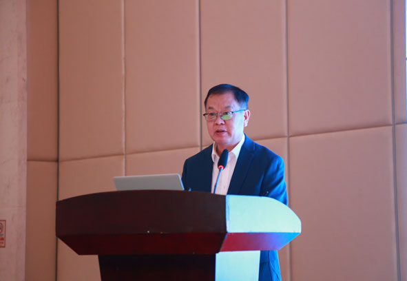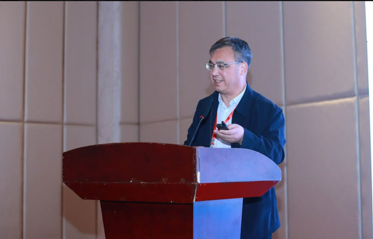 山东省人工智能学会理事长尹义龙教授致辞,他首先向与会的各位专家学者表示诚挚感谢,然后介绍了学会自2018年成立以来的快速发展,他强调本次学术研讨会对推动人工智能产业高质量发展具有重要的推动作用。