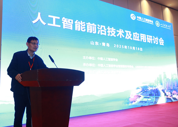 2025年10月18日,由中国人工智能学会主办、中国人工智能学会智能服务专委会和山东科技大学计算机科学与工程学院承办、山东省人工智能学会协办的“人工智能前沿技术及应用学术研讨会”在青岛市黄岛区珠山大饭店成功举行。研讨会邀请到中国工程院院士蒋昌俊教授、东北大学王兴伟教授、暨南大学古天龙教授、山西大学梁吉业教授、西安电子科技大学公茂果教授、上海交通大学贾开副教授等知名学者作精彩报告。