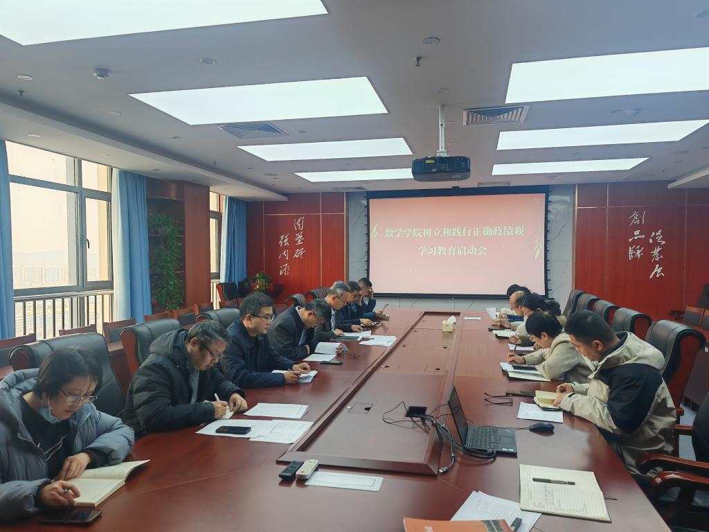 为全面落实中央、省委及学校党委关于开展树立和践行正确政绩观学习教育的部署要求,3月10日,数学学院党委在1601会议室召开党委(扩大)会议,启动学院树立和践行正确政绩观学习教育。学院党委书记贾红果主持会议并讲话,学院领导班子成员、各党支部书记参加会议。