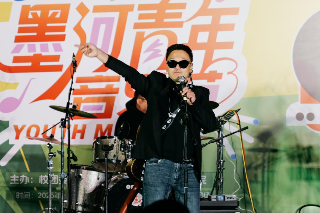 音乐节在浪漫且充满活力的夜色中拉开帷幕。学校2024级学生孙越同学以《姑娘》《蜻蜓》两首深情动人的原创歌曲惊艳开场,清澈的嗓音与真挚的创作瞬间点燃了全场观众的热情。
